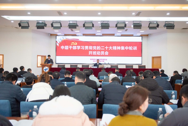 蒋建军要求,要服从轮训安排,认真对待“怎么学”的问题。专家辅导环节,要全面把握党的二十大精神的理论创新和重点亮点,完整全面掌握党的二十大报告蕴含的重大意义、科学体系、丰富内涵和实践要求;集中自学、个人自学环节,读原著、学原文、悟原理,原原本本研读党的二十大报告和党章,学习习近平总书记在党的二十届一中全会上的重要讲话精神;分组研讨和总结结业环节,紧紧围绕学校改革发展稳定的重大问题、师生反映强烈的突出问题、党的建设面临的紧迫问题学思践悟,找准推进学校特色鲜明高水平应用型大学建设的着力点和突破口。
