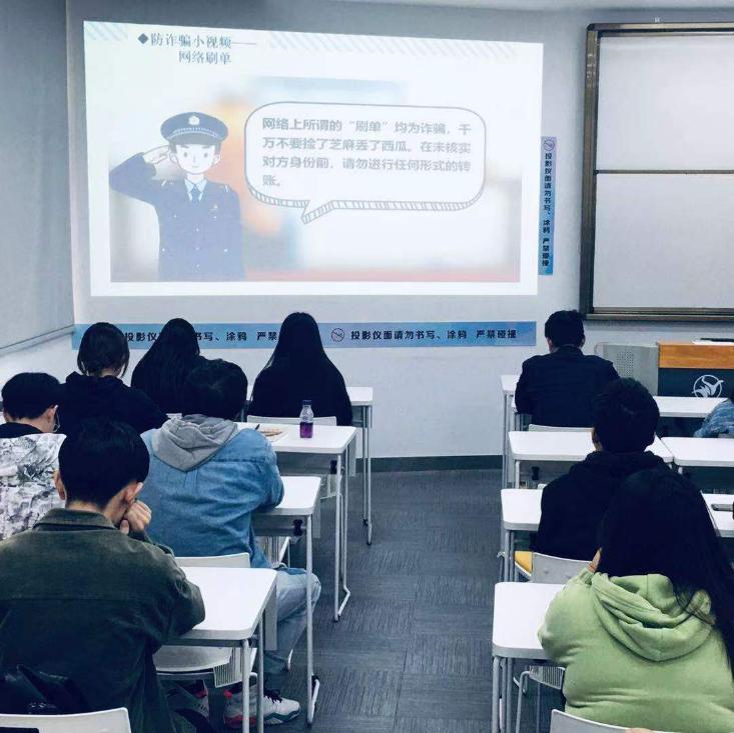建立警校、校级、院级、班级反诈工作群,积极联动属地文华派出所开展工作。各学院定期组织开展“防范电信网络诈骗专题教育”专题活动,教育引导学生提高防范电信网络诈骗的意识以及维护集体荣誉的责任意识。悬挂防电信网络诈骗宣传横幅、海报、展板,发放相关宣传手册,在教学楼、学生寝室楼等场所利用电子屏等载体定期播放校园防诈、反诈教育宣传片,利用新媒体平台推送各类反诈知识推文,营造校园防诈骗宣传教育氛围。