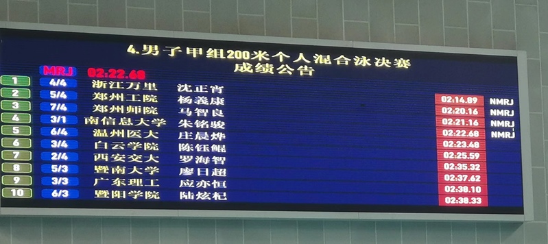 “200米混合泳一直都不是我的强项,但我想挑战下自己。”较短距离游泳而言,中长距离的项目对沈正宵的耐力是一大考验。大学四年,他从未停下训练的步伐,始终以积极的态度迎接新的挑战。这次比赛中他以超出原纪录7.79秒的傲人成绩,打破男子甲组200米混合泳纪录,让过往的汗水和努力有了最好的归宿。从2020年至今,沈正宵在全国和省级各类游泳比赛中已经11次折桂。沈正宵表示,他将继续参加浙江省第十六届大学生运动会游泳比赛,希望能为自己的大学生活画上圆满的句号。