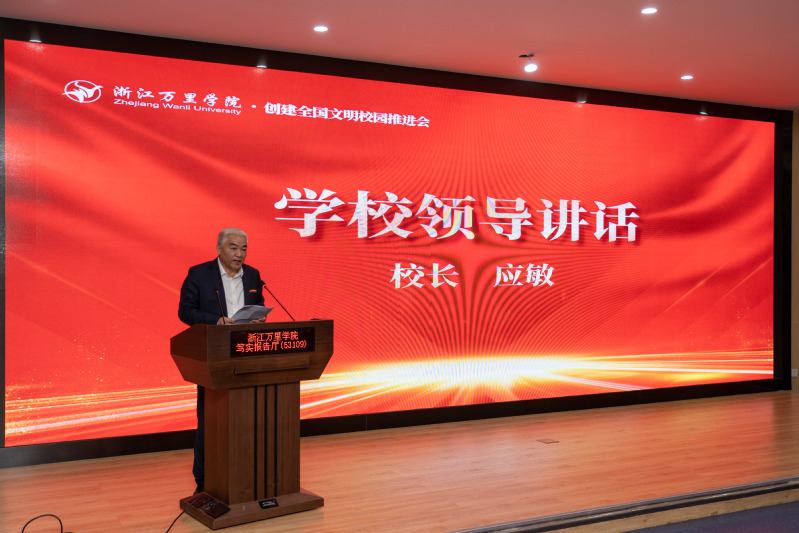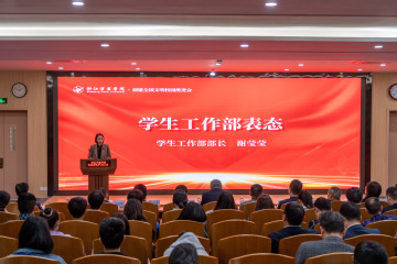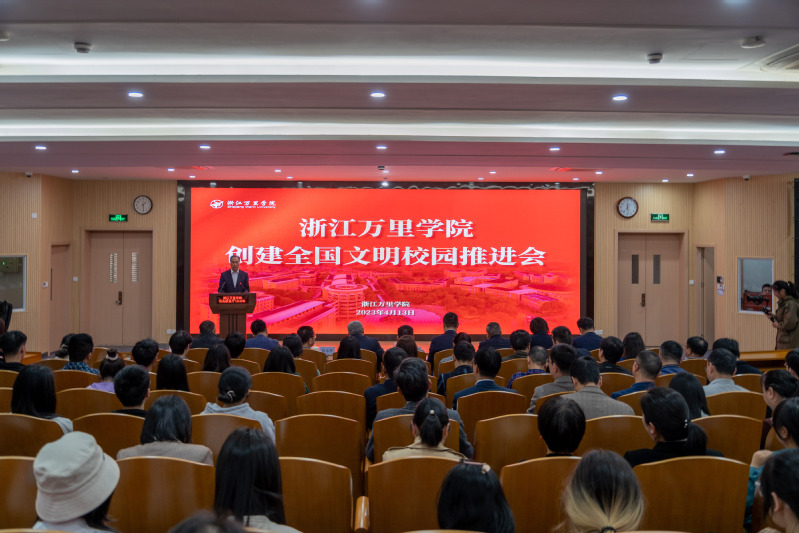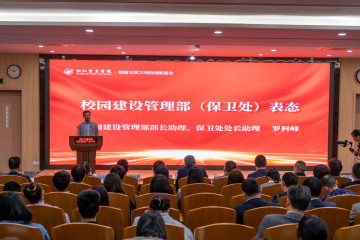 4月13日下午,我校召开创建全国文明校园推进大会。学校领导班子成员、全体中层以上干部、全体辅导员(班主任)、教师代表、万里后勤公司代表、学生代表200余人参加会议。会议由校党委书记蒋建军主持。
