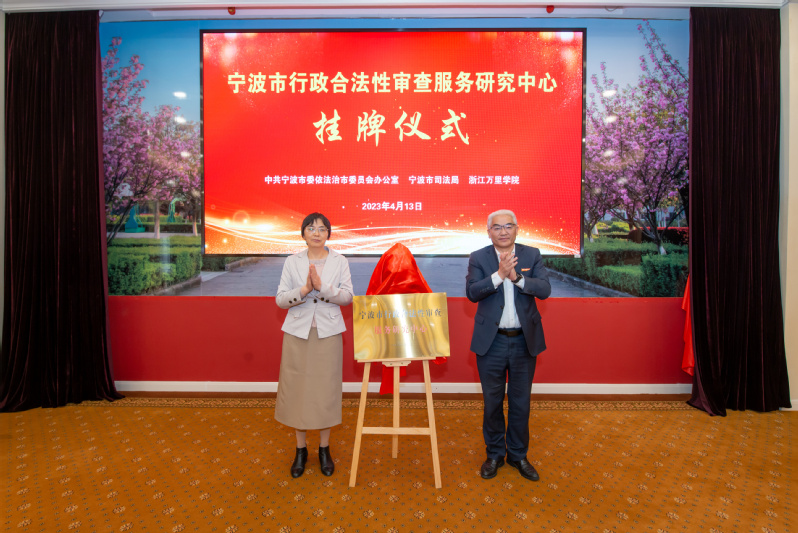 4月13日,全省首个行政合法性审查服务研究的专门机构——宁波市行政合法性审查服务研究中心在我校正式挂牌成立。市委依法治市办副主任、市司法局党委书记、局长蒋文丰,校长应敏共同为研究中心揭牌。