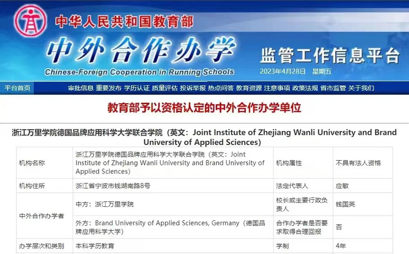 日前,我校与德国品牌应用科学大学合作设立的“浙江万里学院德国品牌应用科学大学联合学院”(简称联合学院)获教育部批准。
