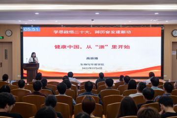 为扎实推进习近平新时代中国特色社会主义思想主题教育,凝聚广大师生党员在奋进中国式现代化赶考之路上的磅礴力量,5月6日下午,我校举行“学思践悟新思想,踔厉奋发建新功”微型党课大赛决赛,来自教学、教育管理、学生管理与服务一线的13名教师党员参赛 。