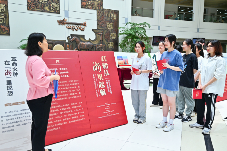 据了解,巡展期间,马克思主义学院梁立新、肖意贞、鲁海军、张春秀、王海英等多位思政教师,三门思政理论课在巡展现场上课,讲述共产党宣言与浙江的故事,八八战略带来的引领的浙江高质量发展,一堂堂红色文物现场课打造了一场形式新型、生动活泼的大思政课,同学们更是通过思政理论课实践课程,前往巡展现场打卡,分享观展体会。各二级学院组织也3000多名师生前往参观学习。