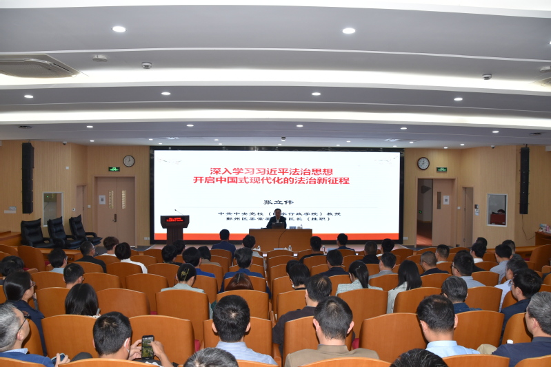5月12日下午,学校开展学习贯彻习近平新时代中国特色社会主义思想主题教育专题讲座暨习近平法治思想专题报告会。中共中央党校(国家行政学院)政治和法律教研部法学理论教研室主任、博士生导师、现挂职鄞州区区委常委、副区长张立伟教授作《深入学习习近平法治思想 开启中国式现代化的法治新征程》专题报告。学校全体中层干部、法学院师生代表200余人参加。校党委副书记、副校长王伟忠主持会议。