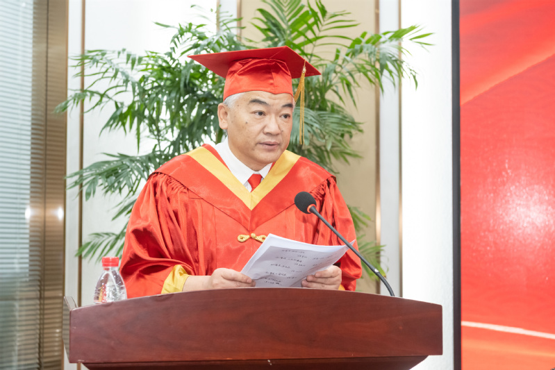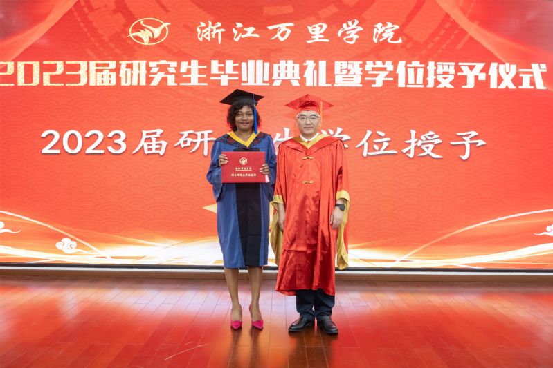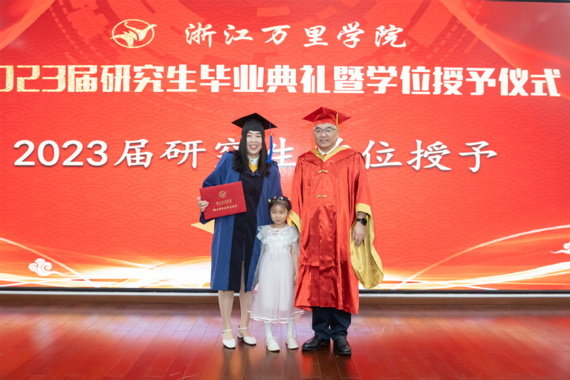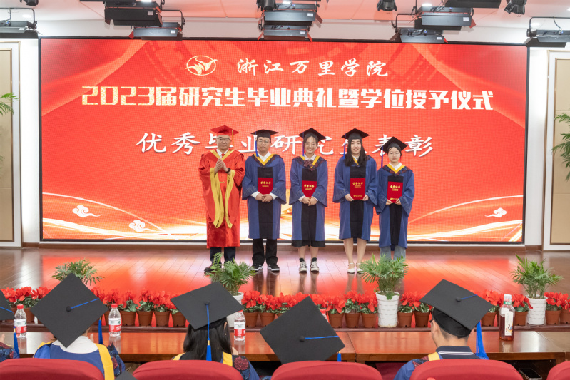 王伟忠宣读2023届研究生学位授予文件及校优秀毕业研究生表彰文件。应敏为校优秀毕业研究生颁发荣誉证书并合影留念。