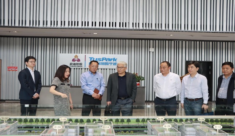 副校长杨震峰、校办主任林德操、社会合作处副处长张立桥、宁波启迪副总经理邵瑾、徐晓露等陪同考察。