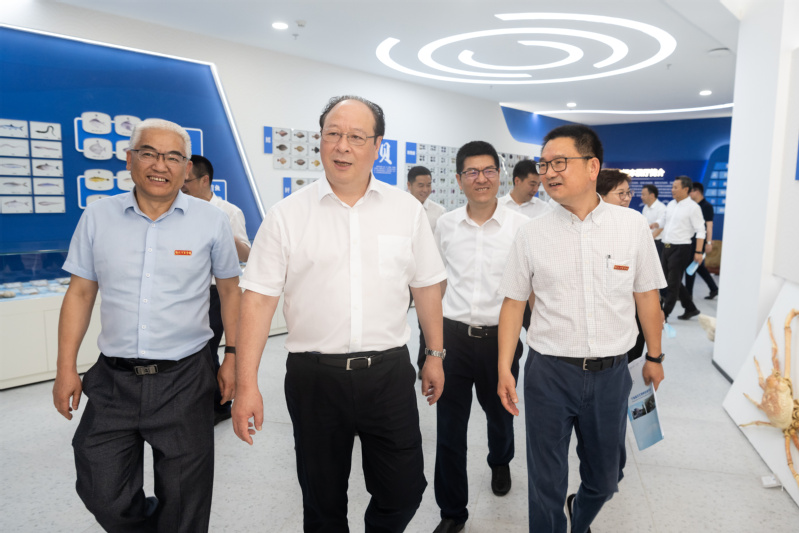 彭佳学一行参观了公共平台实验室和海洋水产种质资源标本库,详细了解了研究院设立背景、目标定位和运行情况,重点了解了相关建设工程、科研进展及重要成果,并着重询问了成果的关键技术点、创新点以及未来产业化前景。