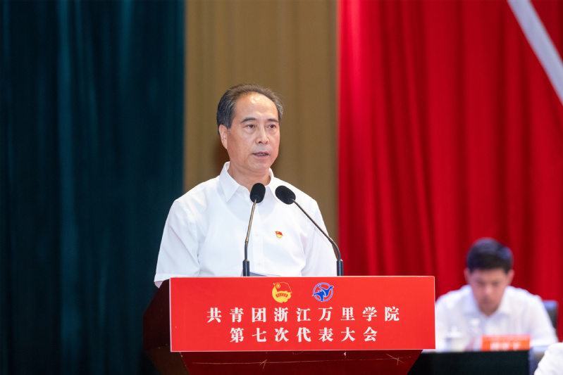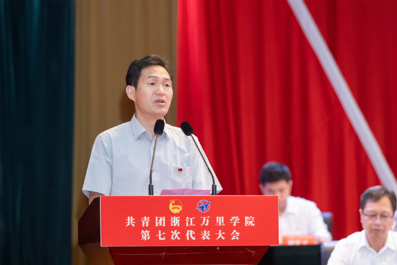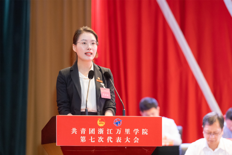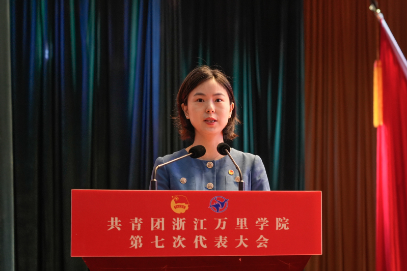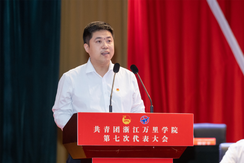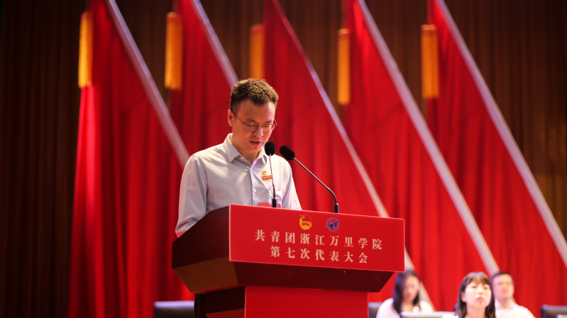 巩毅代表共青团浙江万里学院第六届委员会向大会作《牢记嘱托跟党走,挺膺担当勇作为,团结带领全校团员青年为创建特色鲜明的高水平应用型大学和更名大学奋斗目标汇聚磅礴青春力量》的工作报告。