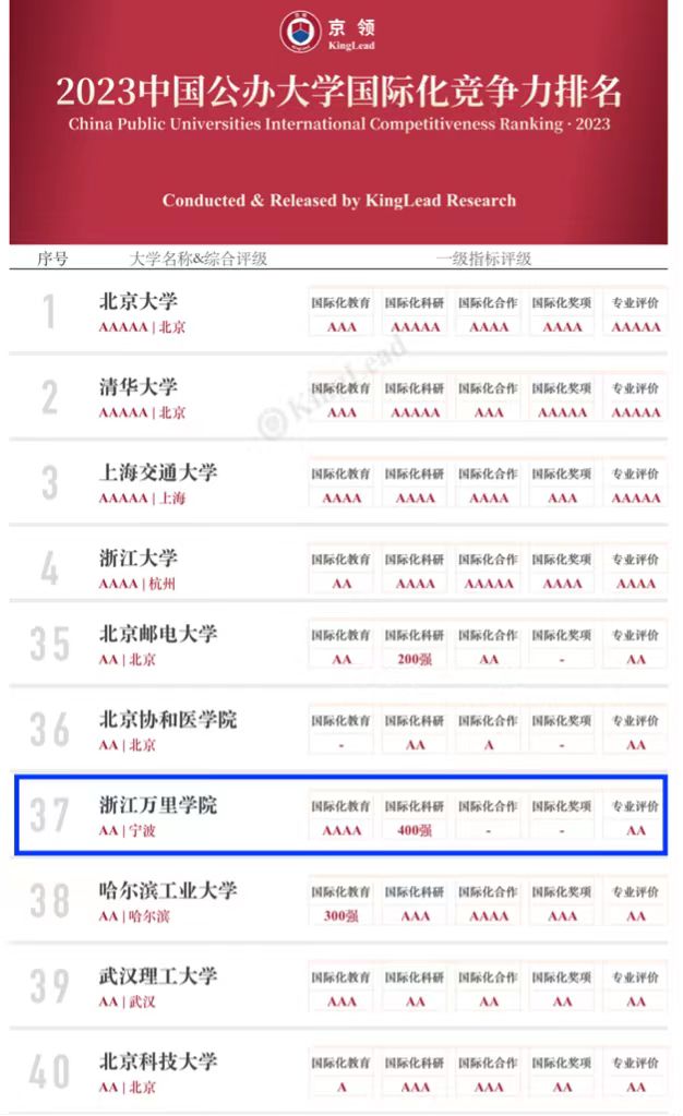 近日,“京领·中国公办大学国际化竞争力排行榜·2023”榜单公布,我校稳定发力,保持在甬高校第一、浙江省高校第三、全国第37位,与2022年表现一致。