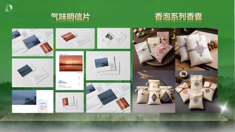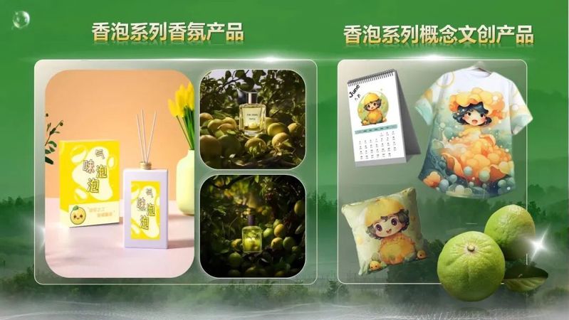 实践队紧扣“文旅助力未来之乡建设,助推乡村振兴”的主旨展开实践,设计出香泡专属IP形象“气味泡泡”、气味明信片、香氛及香包等扩香产品,并应用于多场景。同时,根据“气味泡泡”将香泡拟人化,设计系列IP用于宣传与产品包装中,并以此为基础,设计系列文创产品,其中包括日历、抱枕、T恤衬衫等。