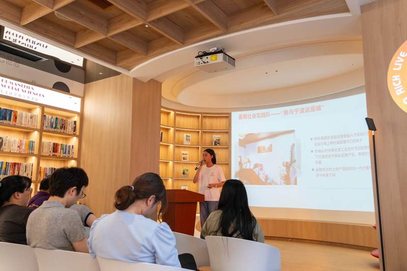 马克思主义学院直属党支部副书记孙叶飞和“我与宁波这座城”暑期社会实践队带队老师肖仕榜共同主持了此次宣讲活动。实践队的四位青年学生则化身宣讲员,“送课”到基层,把思政小课堂融入社会大课堂,讲好“八八战略”在身边的故事。