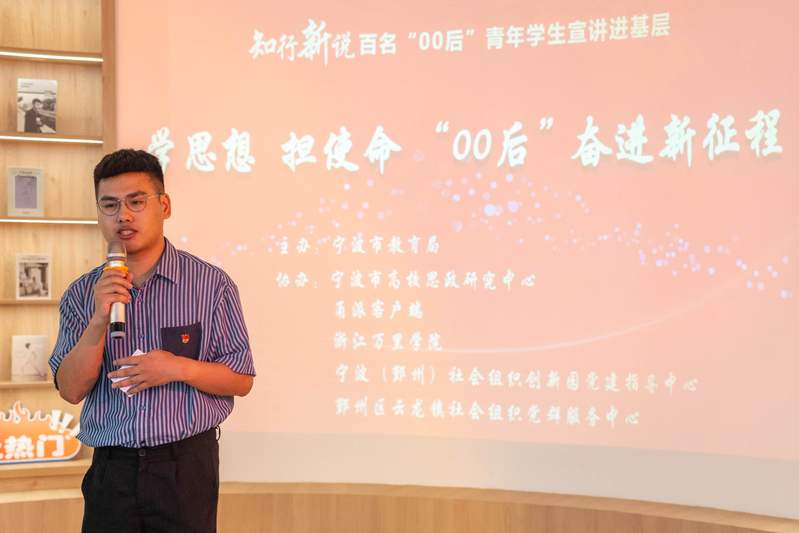 近日,我校知行新说“00后”青年宣讲团走进鄞州区云龙镇社会组织党群服务中心。