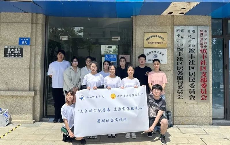 暑期,我校法学院“与法同行献青春,法治宣传暖民心”社会实践队联合综合执法局、司法局等部门,在鄞州区学府社区、徐家社区、缤丰社区等地开展了一系列法治宣传活动,为法治建设注入活力。