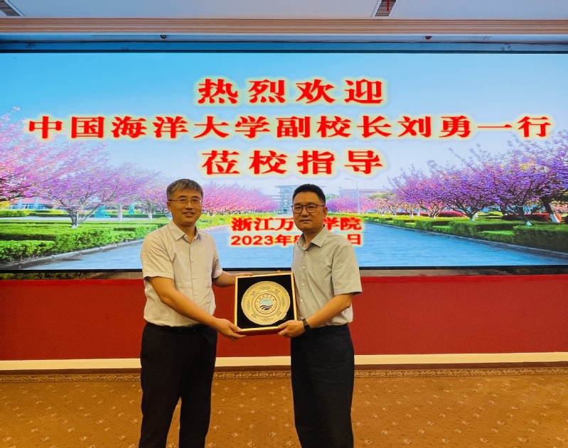 刘勇对我校办学成效给予赞许,对五年来两校紧密协同、扎实有效的合作表示肯定与认可。他表示,双方的合作是用行动积极践行习近平总书记的“大食物观”、写好“蓝色种业”大文章的生动实践,是围绕国家重大战略和部署,立足立德树人根本任务,以学科建设为引领,结合区域特点开展的有效实践。中国海洋大学愿意通过人才共享、平台共建、学科共促、成果共育等方式继续同浙江万里学院一起在博士点建设、学科建设、人才培养等方面做规划、创载体、建机制、谋实效,深耕渔业“芯片”,奋力书写谋海济国的新答卷。