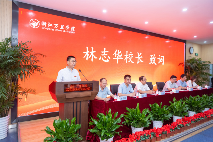 林志华代表学校欢迎2023级研究生加入浙江万里学院,勉励同学们要秉持“自强不息、恒志笃行”的万里校训,弘扬“只要有1%希望就要尽100%努力”的万里精神,争做“能学善研,敢闯会创”的万里新人。