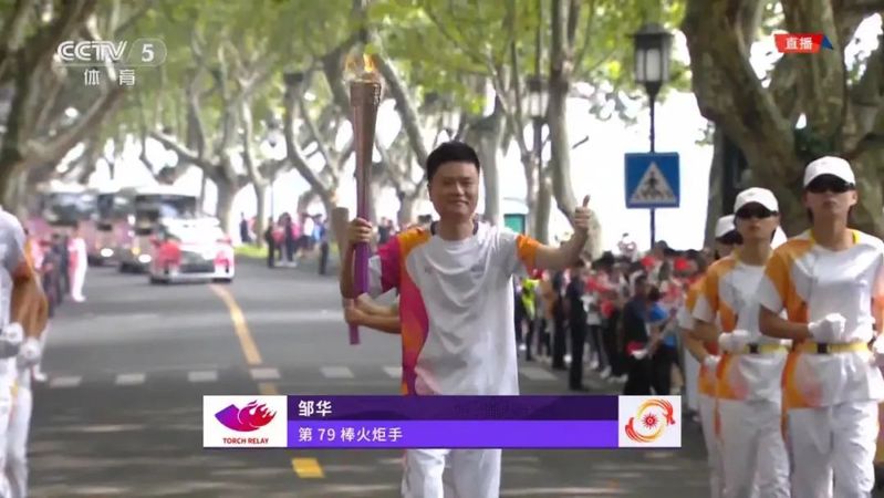 9月8日上午,杭州第19届亚运会火炬传递启动仪式在杭州西湖涌金公园广场举行。我校法学专业2001级校友邹华担任杭州站第79棒火炬手。