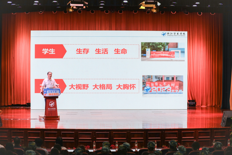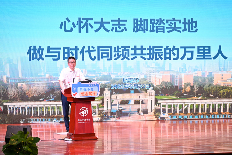 “希望你们在读万卷书中涵养人文品格,在行万里路上践行科学精神,在攀万丈峰中勇担时代使命,在破万层浪里彰显万里精神,相信你们在‘自强不息、恒志笃行’的校训熏陶下,一定会拥有无限美好的未来!”林志华祝福全体新生。