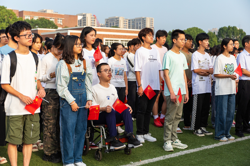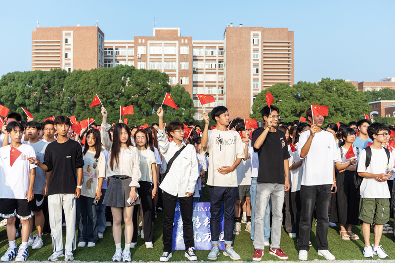 最后,全体师生齐声合唱《我和我的祖国》,万里学子深情地挥动手中红旗,以青春的歌声,共同祝福伟大祖国生日快乐。