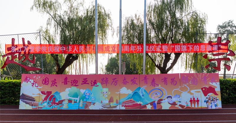 “亚运,心中的那片海。我们一起扬帆逐梦,我们彼此心潮澎湃!万里少年,正扬起风帆,与祖国一起,奔向未来!”升旗仪式在学生代表深情朗诵的《亚运,心中的那片海》中拉开帷幕。