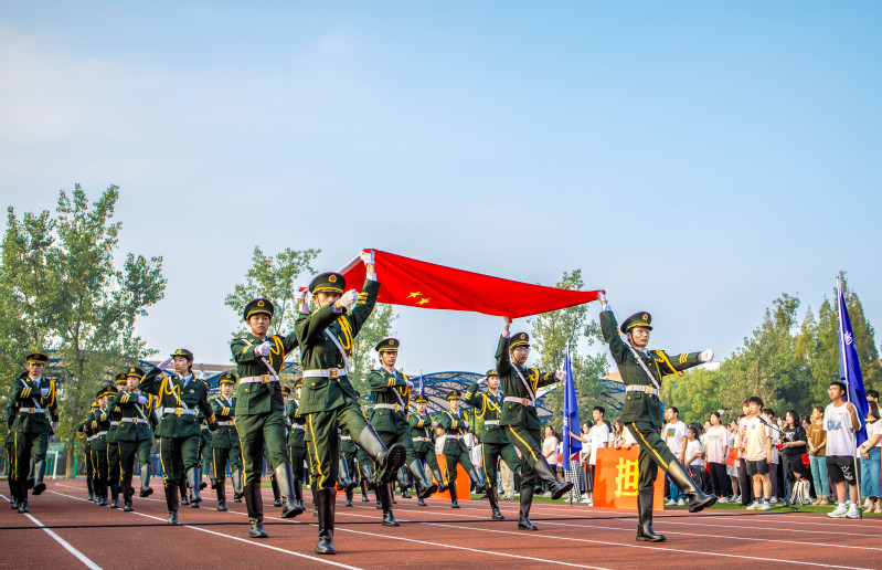 9月28日7时,迎着朝阳,回龙校区田径场上,雄壮的国歌声中五星红旗迎风展如画。学校举行庆祝中华人民共和国成立74周年国庆升旗仪式,校长林志华、党委书记蒋建军等全体校领导,相关职能部门负责人,各二级学院书记与2023级全体大一新生齐聚于此,面向国旗肃立致敬,高唱国歌,共同献礼中华人民共和国74岁华诞。