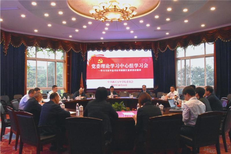 10月11日上午,党委书记蒋建军主持召开学校党委理论学习中心组学习会,专题学习习近平总书记在浙江考察时的重要讲话精神。校党政领导班子成员参加会议。