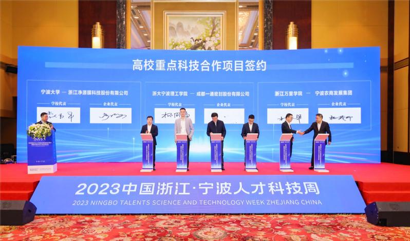 11月1日,在2023中国浙江·宁波人才科技周之2023科教融汇与人才发展系列活动开幕式上,我校与宁波农商发展集团有限公司签订战略合作协议,校长林志华和宁波农商发展集团有限公司总经理杨茂印代表签字,共同开启战略合作之路。