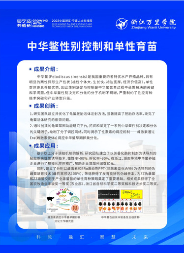 人才科技周期间,我校展出“中华鳖性别控制和单性育苗”“浙贝3号新品种(浙贝母)”两项科技成果。此前,校长林志华曾带队赴宁波农商发展集团有限公司开展考察,双方就党建合作、产科教融合、科研创新、人才培养等方面进行深度交流。副校长杨震峰陪同考察。