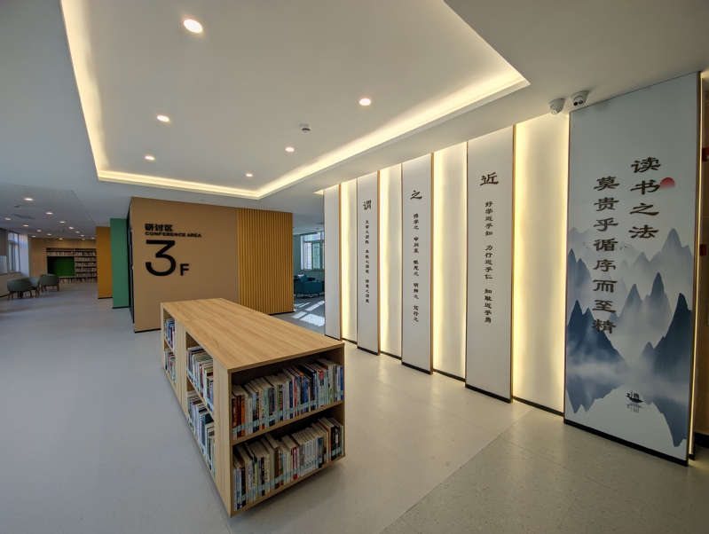 据悉,回龙校区图书馆占地面积5000平方米,馆藏图书10万余册,涵盖全学科领域。馆内空间布局多样,功能分区明确。共有四层,含阅读区、休闲区、研讨区等学习空间,可容纳1200名师生同时在馆学习。科技赋能阅读新体验,现代化智能设备体验区配有VR/MR、电子棋盘、电子书法台、电子钢琴、朗读亭等先进智能设备,带给师生非同凡响的感受。馆内采用全光网络,实现WiFi6无线网络全覆盖,有线网络千兆到桌面,无线带宽最高9.6Gbps,为师生在馆内的智慧学习提供了便捷的“信息高速公路”。