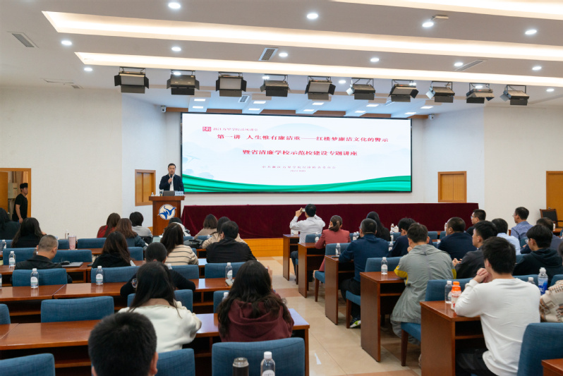 鲁焕清以屈原《楚辞》中的“人生惟有廉洁重,世界须凭气骨撑”为题,为师生们带来了一堂生动的廉洁教育课。讲座选取《红楼梦》中的三个人物,从不同侧面切入,以小见大地用贾雨村、王熙凤、贾探春的人物成败故事,给在场师生以强烈的警示。他指出,“廉”是工作的底线,是生命的底色,全体师生应坚守廉洁底线,永葆清廉底色。