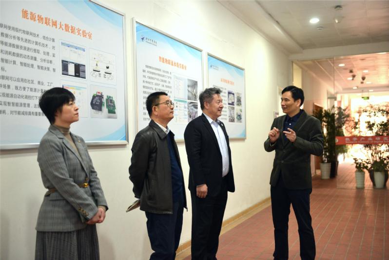 刘骏一行考察了我校数字经济产业研究院。研究院院长郑紫微向来宾介绍了研究院学科建设相关情况,重点展示了以产业大脑、物联网技术为核心的研究成果服务地方产业发展的情况。
