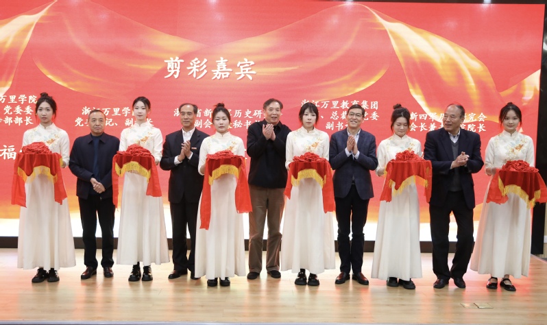 11月24日,“共富共美看浙里”——“八八战略”实施20周年主题书画作品展走进我校。浙江省万里教育集团总裁林良富,我校党委书记蒋建军,秘书长、党委宣传部部长王福银参加开幕仪式,浙江省新四军历史研究会领导、学校相关职能部门负责人、艺术届代表共同出席活动。