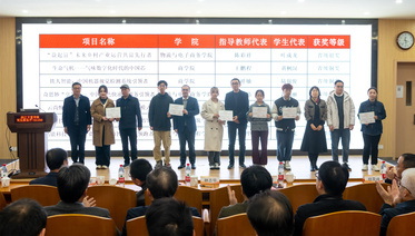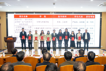 会上表彰了2023年大学生创新大赛先进单位和项目。物流与电子商务学院获“突出贡献奖”,商学院、文化与传播学院、设计艺术与建筑学院、信息与智能工程学院等四个学院获“优秀组织奖”。