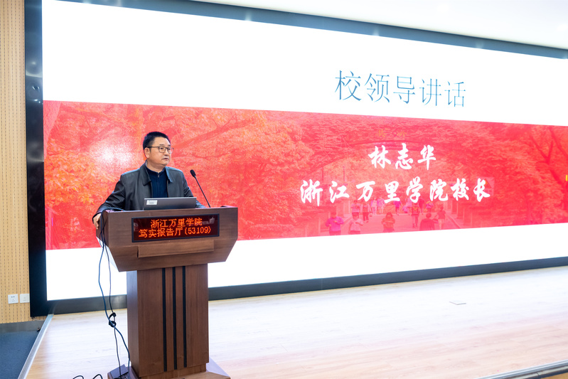 林志华代表学校向在此次大赛中获得国赛金奖的团队表示热烈祝贺,对在成绩背后默默付出的老师和同学们表示诚挚慰问!林志华表示,回首既往,学校群策群力结出创新创业累累硕果。学校历来高度重视创新创业教育,将中国国际大学生创新大赛作为塑造学生创新精神,提升学生创新创业能力的重要载体。长期以来,学校通过顶层设计,成立创新创业学院,将创新创业教育纳入人才培养工作体系,校院两级不断优化创新创业课程体系、建设高水平师资队伍、组织学科竞赛等举措,营造起崇尚科学、勇于创新的良好氛围,培养了一批敢闯会创的优秀大学生。立足当前,师生勇立潮头扛起“创新”工作新担当。当前,学校正处在历史发展的最好时期,是转型升级的关键时期,也是治理体系和治理能力建设的特殊时期,更是万里精神文化传承和发展的重要时期。学校通过不断创新工作机制,拓展办学空间,打造高水平学术平台,逐渐走出了一条基础研究与应用研究并重、科技创新与社会服务融合、产科教协同发展的创新之路,服务区域经济社会能力不断提升,为今后进一步推进学生创新创业和全面成才奠定坚实基础。面向未来,要以赛促干扬帆“创新”工作新航程。下一步,学校要始终坚持育人导向,以国家级学生创新大赛为契机,集聚创新创业教育资源和要素,将创新创业教育贯穿于学校人才培养全过程,构建校政企协同育人机制,推动创新创业教育走深走实。围绕创新大赛的具体工作,林志华从树立创新理念、强化学科引领、促进产学研合作、营造创新氛围等方面,强调校院两级要聚力协同,集中精力,力求成绩再有突破!