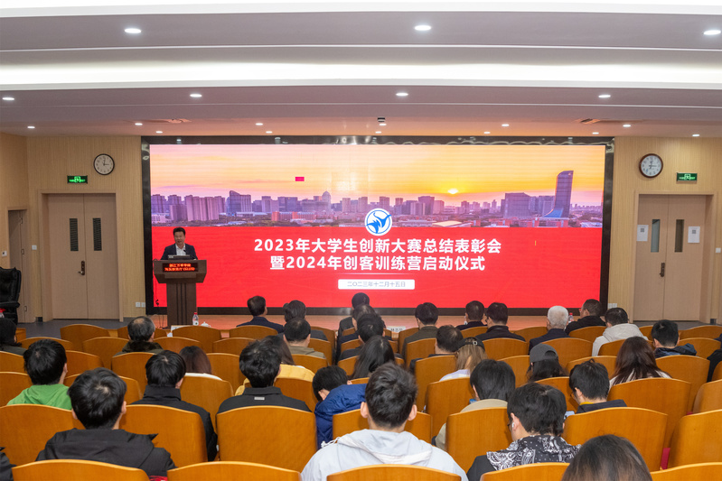 12月15日下午,学校举行2023年大学生创新大赛总结表彰会暨2024年创客训练营启动仪式。校长林志华、党委书记蒋建军,副校长马建荣、杨震峰,宣传部、教务部、科研处、学生工作部、研究生工作部、各二级学院相关负责人同2023年大学生创新大赛参赛师生代表共同参加活动。校党委副书记、副校长王伟忠主持大会。