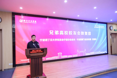 宁波诺丁汉大学校友会宁波分会会长、宁波翼鲲飞盘总经理安晨冉代表兄弟高校校友会致贺信。
