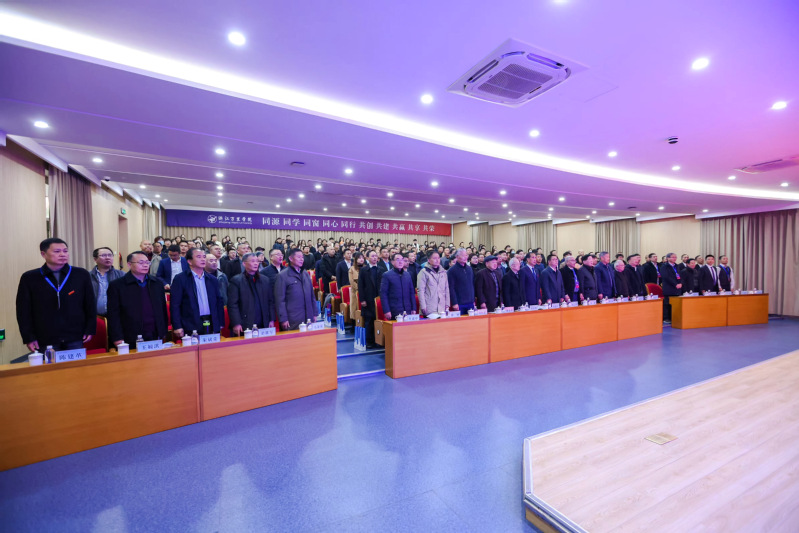 校长林志华、党委书记蒋建军,校友会第一届理事会会长应敏,校党委副书记、副校长、校友会第一届理事会常务副会长王伟忠,副校长、校友会第一届理事会副会长陈建革,副校长杨震峰,校党委委员、校友会第一届理事会副会长王福银等学校领导出席本次大会。来自杭州、宁波、温州、嘉兴、湖州、绍兴、金华、衢州、舟山、台州、丽水、上海等地校友代表和在校师生代表共计300余人欢聚一堂,重温母校情谊,共话学校和校友事业发展的新蓝图。会议在庄严的国歌声中拉开序幕。