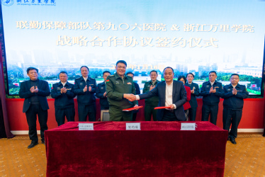 1月16日,我校与联勤保障部队第九〇六医院举行战略合作协议签约暨医学技术教学基地揭牌仪式。联勤保障部队第九〇六医院院长王治权、政委杨军、副院长李杰及护理、运动医学、检验、输血、放射诊疗科等专业的科室主任莅临学校。我校副校长马建荣,副校长、华美生命健康学院院长杨震峰,华美生命健康学院理事会理事长钱国英以及学院领导班子、教师代表们参与签约揭牌仪式。